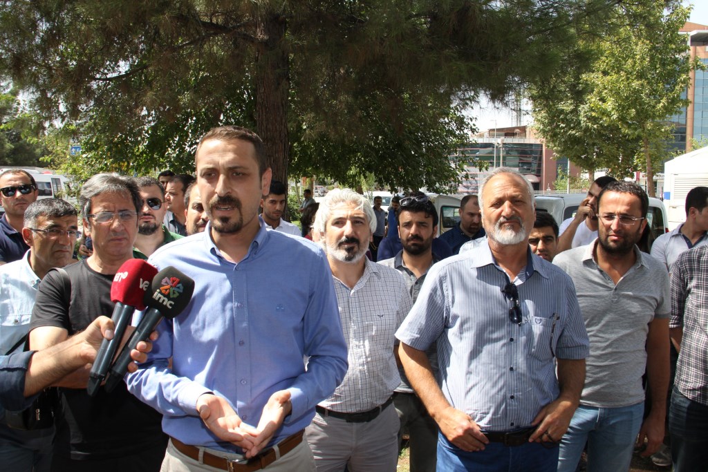 Değerli Basın emekçileri, bildiğiniz üzere Sevgili Baro Başkanımız Tahir ELÇİ'nin katledilişinden bu yana her cuma günü düzenli olarak Adliye önünde bir protesto eylemi ve basın açıklaması yapıyorduk. Valiliğin 15 Temmuz 2016 tarihli açık alanlarda basın açıklaması ve benzer etkinlikleri yasaklama kararına binaen bugün Adliye önünde Tahir ELÇİ için, faillerinin, katillerinin ve arkalarındaki karanlık güçlerin bulunması için yapmış olduğumuz etkinliğe polis tarafından izin verilmedi. Polis, sizin de şahit olduğunuz üzere etkinliğimize müdahale etti ve yapmamıza engel oldu. Ben burada yetkililere soruyorum. 15 Temmuz darbe girişiminden sora OHAL ilan edildi. söz konusu yasaklama kararı OHAL çerçevesinde alınmış olan bir karardır. OHAL kanunu 11. madde söz konusu yetkileri Valilere kamu düzenini, kamu güvenliğini tesis etmek amacıyla sağlamaktadır. Bu karara baktığınız zaman basın açıklamaların ve benzer etkinliklerin kamu düzeni ve güvenliğini ihlal etmek amaçlı olduğu açıkça belirtilmektedir. Tekrar soruyorum. Tahir ELÇİ'yi anmak, Tahir ELÇİ'nin katilleri ve arkasındaki karanlık odaklar bulunsun demek kamu düzenini ne şekilde ve nasıl ihlal etmektedir? Tahir ELÇİ'nin faillerinin bulunmasını istemenin OHAL ile, Darbe girişimiyle ve alınan olağanüstü tedbirlerle ne alakası vardır? Bu kararın derhal kaldırılması talebinde bulunuyorum. Söz konusu kararı ve etkinliğimize yönelik müdahaleyi kınıyor ve eleştiriyorum.