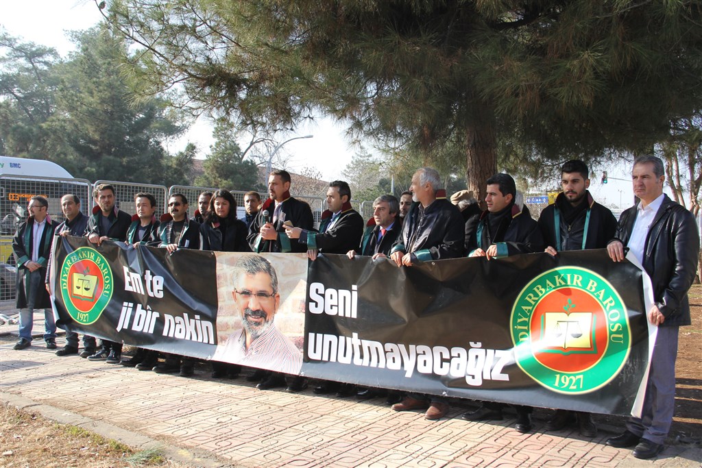 Yine bir cuma günü Diyarbakır Adliyesi önünde sevgili Başkanımız Tahir ELÇİ'nin alçakça katledilişini protesto etmek ve faillerinin bulunmayışına dikkat çekmek için toplanmış bulunuyoruz. Bu cuma 20156 yılının son cuması. Tahir ELÇİ'nin katlinin üzerinden 13 aylık biz zamanı geride bırakmış bulunuyoruz. Ancak her hafta söylediğimiz gibi etkili, failleri bulmaya ve arkasındaki karanlık güçleri ortaya çıkarmaya yönelik bir adli ve idari soruşturma yürütülmediğinden kaynaklı şikayetlerimizi sürekli olarak sizler aracılığıyla tüm kamuoyuna bildirdik. 2016 yılının sonundayız ve Tahir ELÇİ'nin katilleri ve arkasındaki güçler bulunamadı, Cinayet aydınlatılamadı. 2017 yılında Tahir ELÇİ Soruşturma Dosyasının yeniden bizim itirazlarımız doğrultusunda ele alınması ve soruşturmanın sil baştan yenilenmesi ve bu perspektifle görüşülmesini talep ediyoruz. Biz daha önce de ifade ettiğimiz üzere tüm yetkililerin bizlere, ailesine Diyarbakır Barosuna vermiş olduğu sözleri tutmaları gerektiğini kendilerine bir kez daha hatırlatıyorum. katılımınız için teşekkür ediyorum.