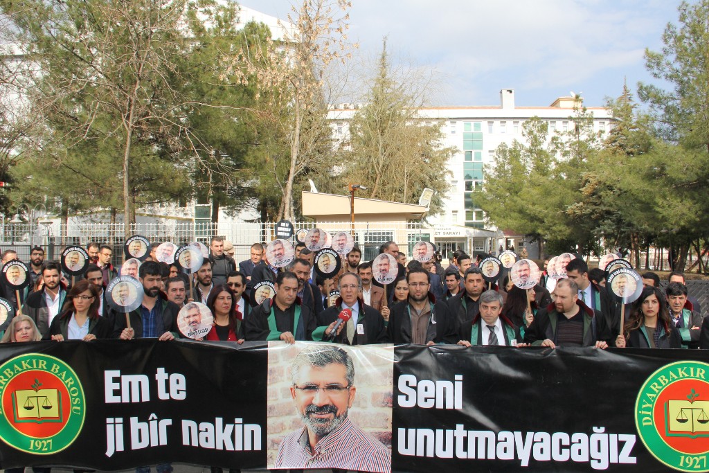 Bugün Baro Başkanımız Tahir ELÇİ'nin katledilişinin 90. gününü protesto etmek amacıyla her hafta olduğu gibi toplanmış bulunmaktayız. Tahir Elçi'nin katledilişini üzerinden üç ay geçmesine rağmen herhangi bir ilerleme söz konusu değil, herhangi bir fail yakalanmamıştır. Başkanımızın katilleri ve katillerin arkasındaki karanlık güçlerin kimler olduğu yönünde henüz herhangi bir somut bilgi söz konusu değil ama kamuoyunun vicdanlarında bu olayın nasıl olduğu ve başkanımızın nasıl bir insan olduğu yönündeki bilgi herkesin malumudur. Biz geçen protesto eylemimizde de söylemiştik. Diyarbakır Barosu olarak Türkiye'deki yargının bir onur meselesi olarak bu cinayetin aydınlatılması olarak görüyoruz. Türkiye'deki bu cinayetin arkasındaki katilleri ve onların destekleyicileri olan güçleri ortaya çıkarmadığı sürece buradaki görevini yerine getirmemiş olur ve bu leke Türk yargısının üzerinden tamamen kalkmamış olur. Biz bütün umudumuzu koruyarak bu cinayetin aydınlanmasını arzu ediyoruz ancak gittikçe sabrımız da azalıyor. 1100 üyesi olan Baromuz bugüne kadar metanet ve sabırla bu olayın aydınlatılması ve cinayetin hemen işlendikten sonra Adalet Bakanı'nın bütün mahiyetiyle Baromuza gelerek taziye mesajlarını sunduktan sonra bize vermiş olduğu sözleri tutmasını bekliyoruz. Biz o zaman da kendilerine cinayetin nasıl işlendiğini tüm detaylarıyla izah ettik ve bazı kuşkularımızı söyledik. Bütün bu kuşkularımızın haklı olduğunu, makul ve mantıklı bir cevabının olması gerektiğini Sayın Bakan bizzat söyledi. Ancak bugüne kadar o sorularımızın hiçbirine sağlıklı bir yanıt vermiş değildir. Soruşturma dosyası yürütülüyor deniyor ama bütün sorular aynı şekilde duruyor. Bunun bir gerekçesi de Diyarbakır Sur'daki sokağa çıkma yasağı olarak gösteriliyor ve oradaki çatışmalı durumun engel olduğu gösteriliyor. Ancak biz biliyoruz ki cinayetin meydana geldiği ortamda güvenlik güçleri sürekli orda bulunuyor ve bütün araç ve teçhizatlarıyla istendiği zaman rahatlıkla bir savcının gidip keşif yapabileceğini, kalmışsa bir delil toplanabileceğini biliyor ve buna inanıyoruz ama ne yazık ki bu yönde herhangi bir açıklama yapılmamıştır.