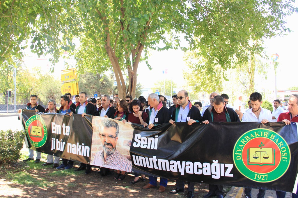 Değerli basın mensupları her Cuma olduğu gibi bu Cuma da Diyarbakır Adliyesi önünde sevgili başkanımız Tahir Elçi'nin faillerinin bulunmayışını protesto etmek amacıyla yine buradayız. Yeni bir adli yıla girdik bu hafta. Ancak tüm Diyarbakır Barosu mensupları buruktur. Zira bu adli yıla sevgili Baro Başkanımız Tahir Elçi olmadan girdik.