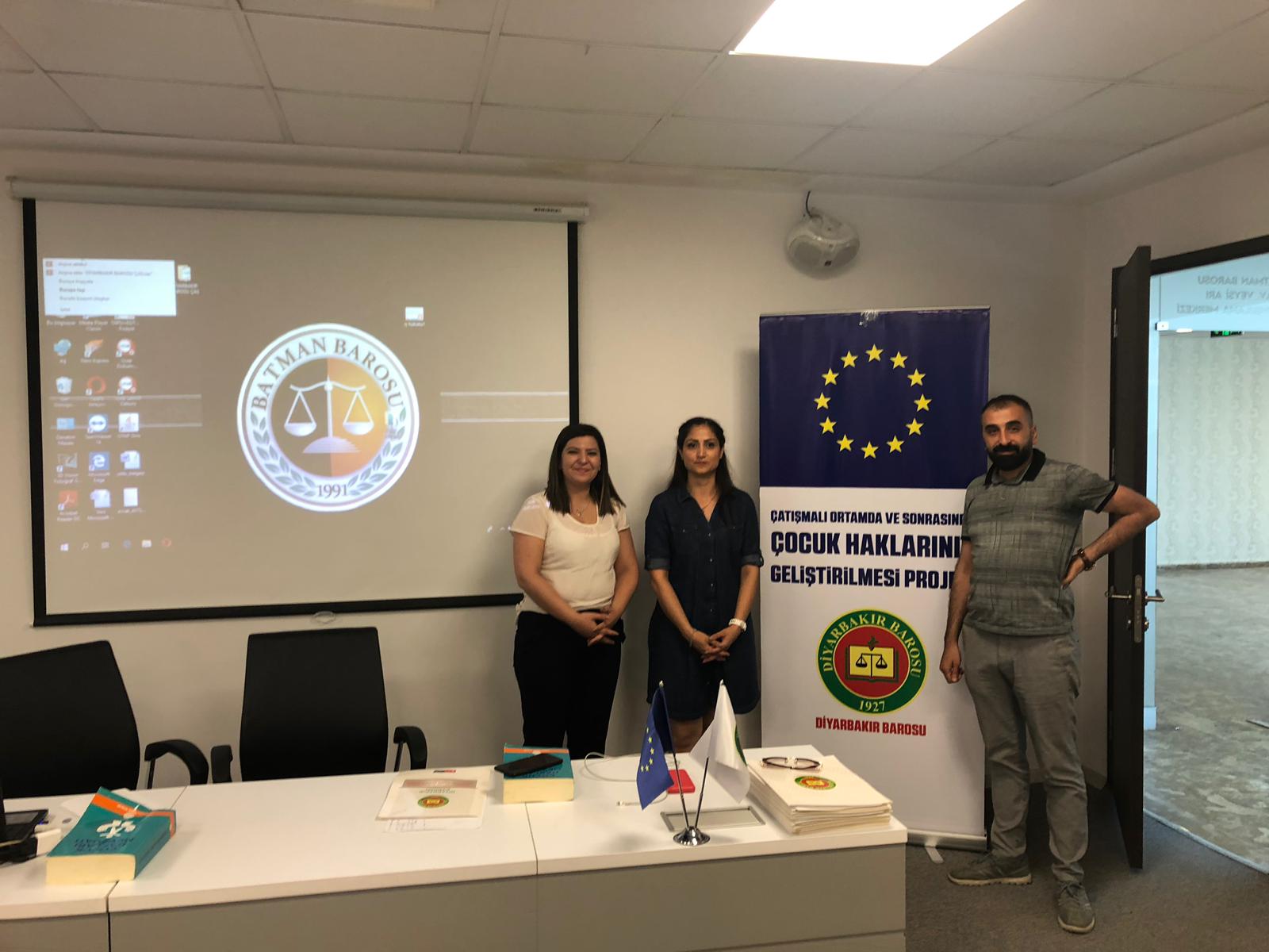 Baromuz Çocuk Hakları Merkezi tarafından yürütülen “Çatışmalı Ortamda ve Sonrasında Çocuk Haklarının Geliştirilmesi Projesi” kapsamında, Batman Barosu Çocuk Hakları Komisyonu Üyelerine Çocuk Adalet Sistemi konulu eğitim verildi. Proje kapsamında Bölge Barolarının çocuk haklarında kapasitelerinin güçlendirilmesi adına yapılan ikinci eğitim çalışması, Baro Başkan Yardımcımız Av. Gazal Bayram Koluman, Proje koordinatörü Av. Mahmut Çiftçi ve Proje Asistanı Av. Asye Demir’in sunumlarıyla tamamlandı.