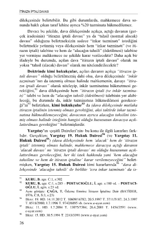 rektiğini, dava dilekçesinde hem “itirazın iptali (ve inkâr tazmina-