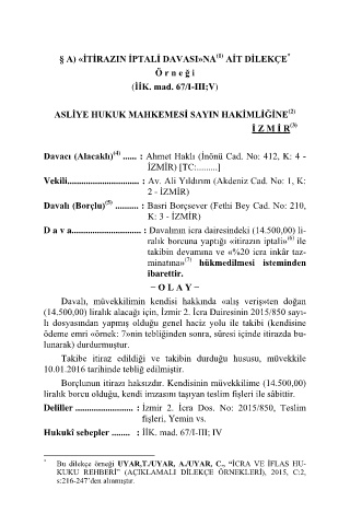 KUKU REHBERĠ” (AÇIKLAMALI DĠLEKÇE ÖRNEKLERĠ), 2015, C:2,