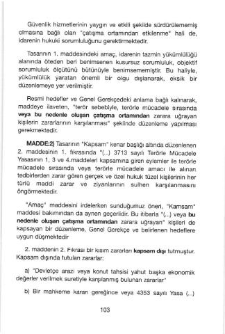 Page 105 - 5233 Sayılı Terör Ve Terörle Mücadeleden Doğan Zararların Karşılanması Hakkında Kanun Ve İlgili Yönetmeliğe İlişkin El Kitabı