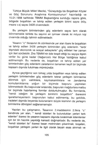 15.01,1998 tarihinde TBMlrl Başkanllğlna sunduğu rapora göre,