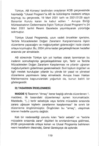Page 121 - 5233 Sayılı Terör Ve Terörle Mücadeleden Doğan Zararların Karşılanması Hakkında Kanun Ve İlgili Yönetmeliğe İlişkin El Kitabı