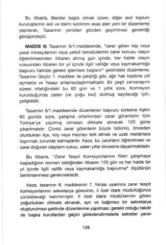 Page 130 - 5233 Sayılı Terör Ve Terörle Mücadeleden Doğan Zararların Karşılanması Hakkında Kanun Ve İlgili Yönetmeliğe İlişkin El Kitabı