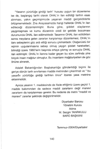 ilan edalmıştir. oHAL'in ilanlna kadar geçen bu süre zarfhda yine