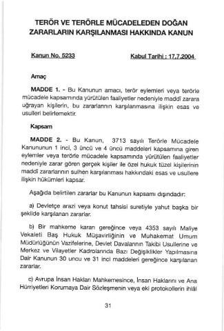 Page 33 - 5233 Sayılı Terör Ve Terörle Mücadeleden Doğan Zararların Karşılanması Hakkında Kanun Ve İlgili Yönetmeliğe İlişkin El Kitabı