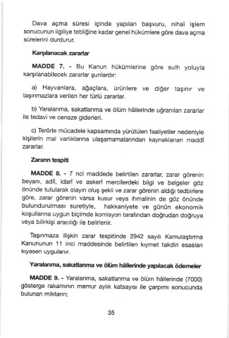Page 37 - 5233 Sayılı Terör Ve Terörle Mücadeleden Doğan Zararların Karşılanması Hakkında Kanun Ve İlgili Yönetmeliğe İlişkin El Kitabı