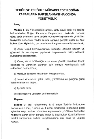 Madde 2- Bu Yönetmelik; 3713 say|l| Terörle Mücadele