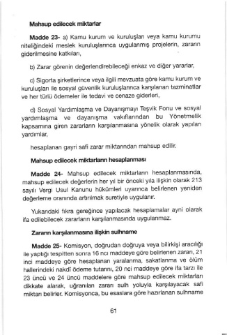 23 üncü ve 24 üncü maddelere göre mahsup edilecek miktarlan