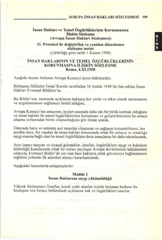 AVRUPA lNsAN tt^KLARı sÖzLEŞMEsl ıo9