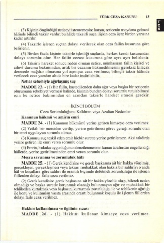 MADDE 26. - (l) Haıİ!nı kul|a.an kimsey€ ceza verilmez,