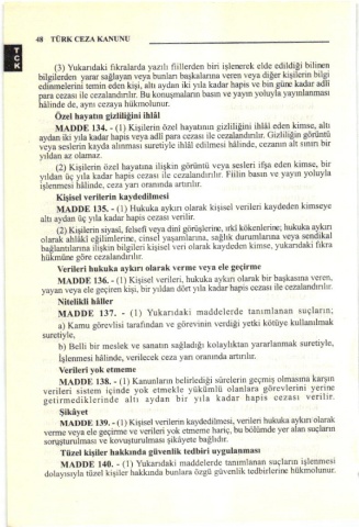 MADDE t34. - (|) K|şilenn ö/elhayatınün 8izlilığlni ihlöled€n kimst, alİl