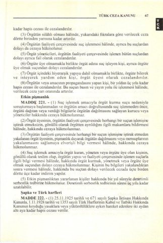 MADDE 22l. - (l ) suç iş|emek amaclyla ör8üt kurrna §uçu rEdeniyl.