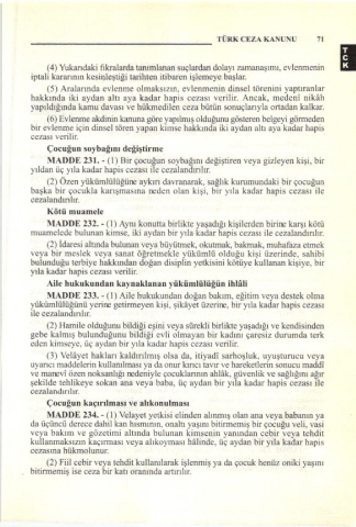 MADDİ 233. _ (l) Aile huln İundan doğan b.k,m, eğilim veya desıek olma
