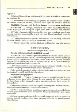 MADDE 303. - t l ) Tüİtıye Cmüü,fiyeıi Dc!lel| ile sv§ hi]iııd€ olin detleün
