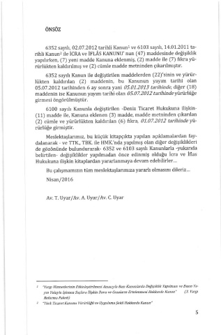 dalanarak - ve TTK., TBK. ile HMK'nda yapülmış olan diğer değişiklikleri