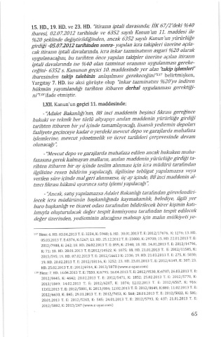 Page 65 - Diyarbakır Barosu Başkanlığı 6352 02.07.2012 Tarihli Kanun Ve 6103 Sayılı 14.01.2011 Tarihli Kanun İle İcra Ve İflas Kanunu'nda Yapılan Değişiklikler Getirilen Yenilikler Ve Bu Konulara İlişkin Son İçtihatlar