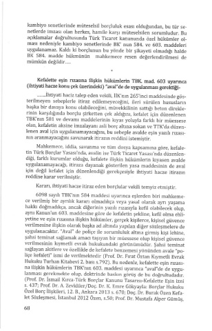 na ilişkin hükümlerin TBl{'nln 603. maddesi uyarınca ''aval''de de uygu-