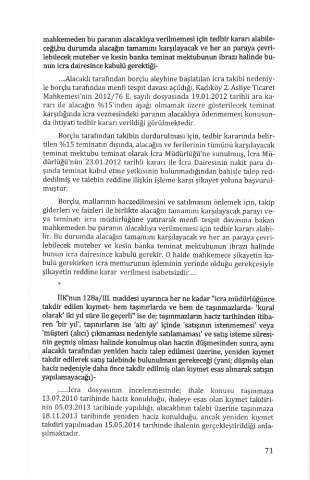 Page 71 - Diyarbakır Barosu Başkanlığı 6352 02.07.2012 Tarihli Kanun Ve 6103 Sayılı 14.01.2011 Tarihli Kanun İle İcra Ve İflas Kanunu'nda Yapılan Değişiklikler Getirilen Yenilikler Ve Bu Konulara İlişkin Son İçtihatlar