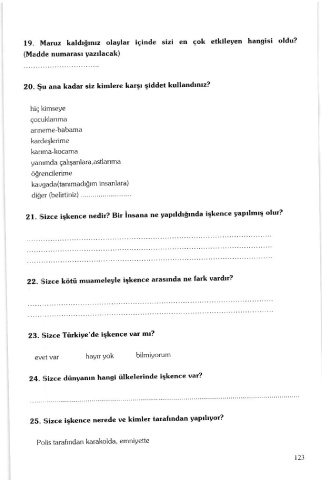 Page 125 - Diyarbakır Barosu Herkes İçin Adalet Projesi Şiddet, Kötü Muamele Ve İşkenceye İlişkin Değerlendirmeler Tutumlar Ve Deneyimler Diyarbakır Araştırması