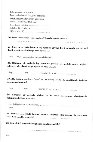 Page 126 - Diyarbakır Barosu Herkes İçin Adalet Projesi Şiddet, Kötü Muamele Ve İşkenceye İlişkin Değerlendirmeler Tutumlar Ve Deneyimler Diyarbakır Araştırması