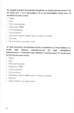 34. A§ağlda belinilen kurumlardan hangllerine ne ölçüde güventyor§unuz? Her