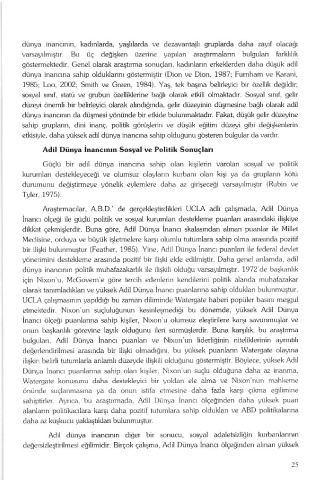 Guçlu bir adil dünya inancüna sahip olan ki§ibnn varolan sosyal Ve politik