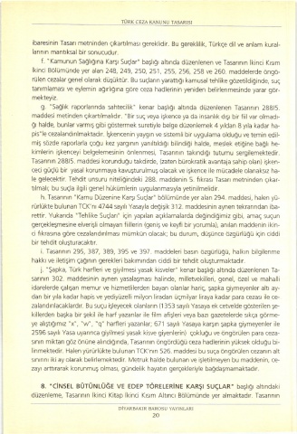h. Tasarının " Kamu Düzenine Karşı Suçlaa' bölümünde yer alan 294, maddesi, halen yü-