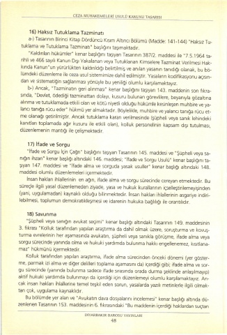 nığın ihzan" kenar başlığı altındaki 146. maddesi; "lfade ve Sorgu Usulü'' kenar başlığını ta-