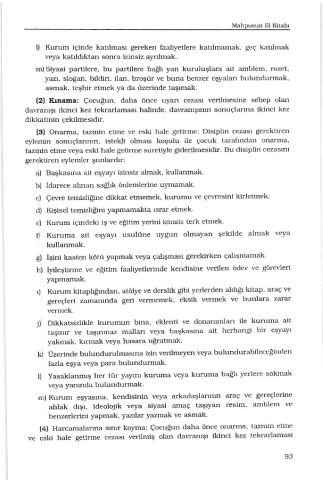 (4ı Haİcama]arma sınıf koyma: Çocuğun daha önce onarma, tazmin etme
