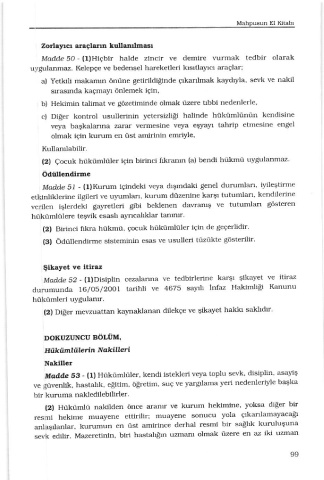 53 - (ı) Hükürİılüler, kendi istekleri veya toplu sevk, disipltn, asayiş