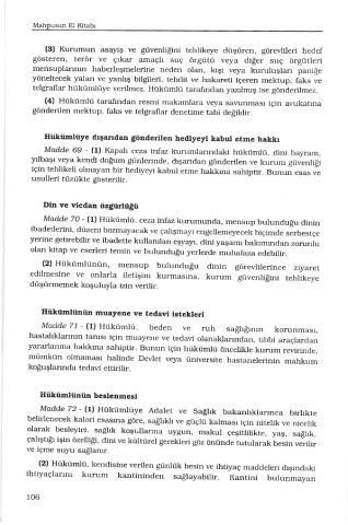 Madde 71 - (ı} Hükümlü. beden ve ruh sağlığının korunmasr.