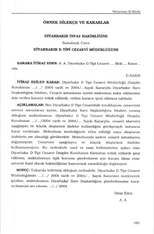 oıtuğum mektubumun. Diyaİbakır D Tipi Cezaeü Müdürlüğü Disiplin