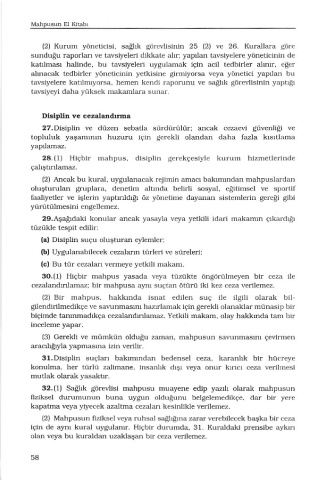 28.{r) Hlçbir mahpus. disiplin gerekçesiyle kurum hizmetlerhde