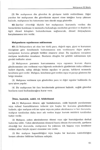 43. (l) Mahpuslara ait olan her türlü para, değerli eşya, giysi ve kurumun