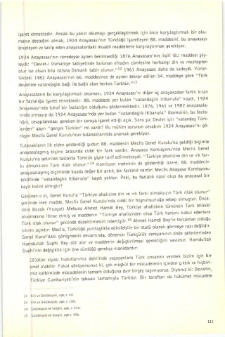 ma.ln dest€ğini almak, 1924 Anayasasl'nln Türllüğü işar.tl€yen 88, maddesini, bu anayasayl