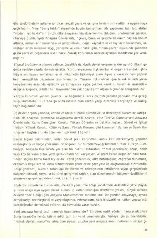 (Türkiye cumhuriyeti Anayasa Önerjsi'nde, "çevre, barış ve gelişme haklan" başllkll bölüm