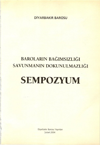 D|YARBAK|R BARosU BAROLARIN BAĞIMSIZLIĞI SAVUNMANIN DOKUNULMAZLIĞI SEMPOZYUM Diyarbakır Barosu Yayınları Şubat 2004
