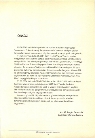 05.06.2003 tarihinde Diyarbakır'da yapılan "Baroların Bağımsızlığı,