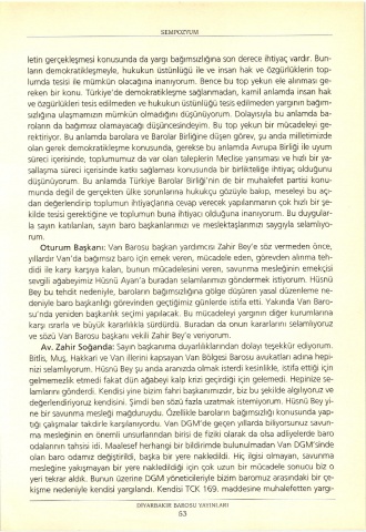oturum Başkanl: Van Barosu başkan yardımcısı Zahir Bey'e söz vermeden önce,