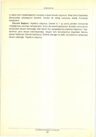 lantımızı yarın devam ettirmeyeceğiz. Akşam tüm konuklarımızı Diyarbakır Barosu