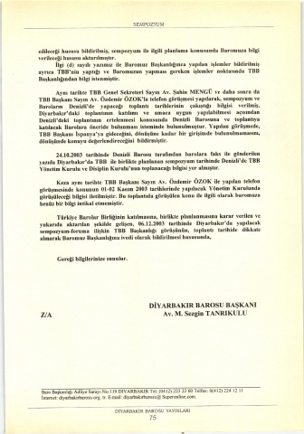 yazıda Diyarbalıır'da TBB ile birlikte plınlınan sempozyum tarihinde Denizli'de TBB