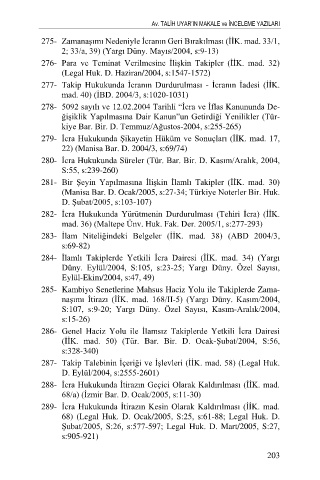 280- Ġcra Hukukunda Süreler (Tür. Bar. Bir. D. Kasım/Aralık, 2004,