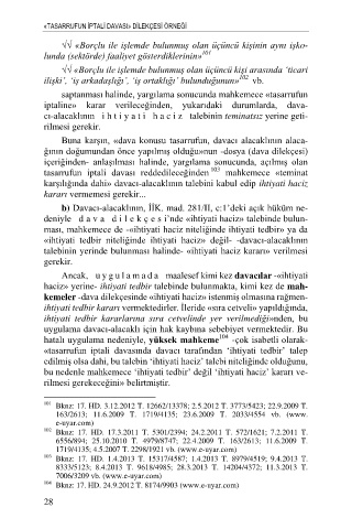 haciz» yerine- ihtiyati tedbir talebinde bulunmakta, kimi kez de mah-