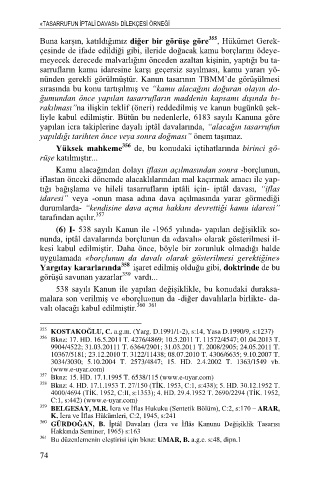 Yargıtay kararlarında 358 iĢaret edilmiĢ olduğu gibi, doktrinde de bu