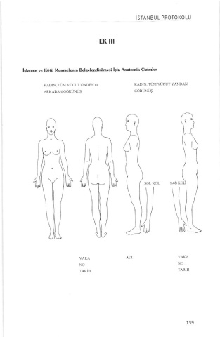 lsTANBUL PRoToKOLü EK lll i§kence ve Körü Muahelenin B€lg.l€nd|.|lmesi lçin Anatomik Çizinrl€r KADlN.Tl]M VÜcl 1 ÖNDENve K,\DIN TL\1 \(IcuT YANDAN c,ÖRUNUŞ 0 R -a- ç] t,( )] 4$ \xl il/ \k ADl 739