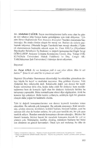 cü oturumumuza başkanllk €dec€k sayın Av, Fırat ANLI'yı (Diyarbaktr